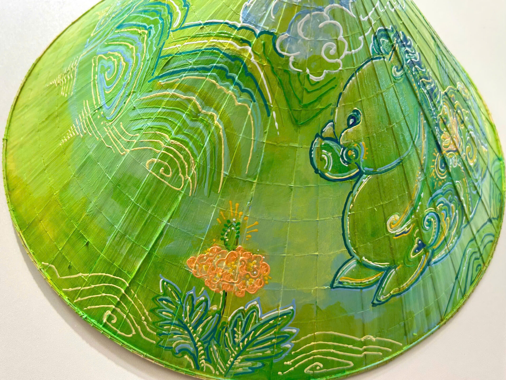 Medium: Acrylic on traditional Vietnamese conical hat